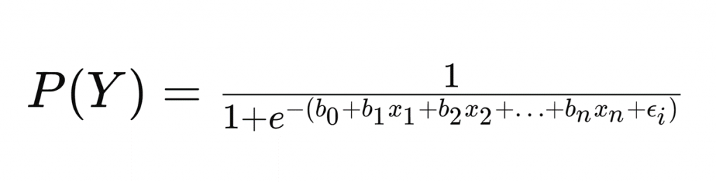 AI algorithms, such as logistic regression or a neural network, can learn from this data to create a predictive model. Below is a simple equation for logistics regression: